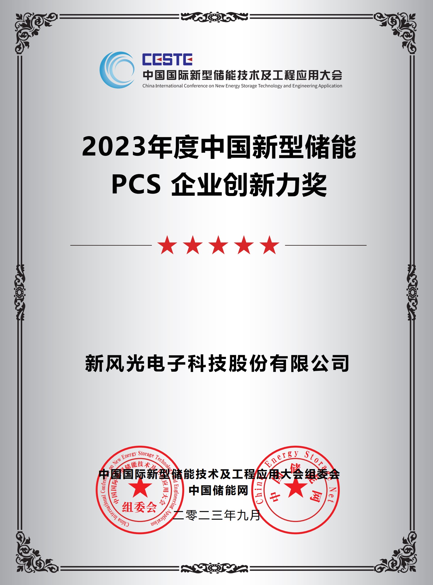 2023年度中國(guó)新型儲(chǔ)能PCS企業(yè)創(chuàng)新力獎(jiǎng)