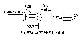潛油電泵變頻器已進(jìn)行了多方面的介紹,由于電壓的\特殊性,加之IGBT模塊的耐壓有限,我們采用模塊串聯(lián)的方式,用三電平電路實現(xiàn)了1140V-2300V電壓等級,研制出了潛油電泵專用變頻器。采用低頻補償對啟動不足加以補償控制。用低頻軟啟動,使電機(jī)啟動平穩(wěn),較好的彌補了工頻起動運行不足,而且采油工可根據(jù)油井含油量的多少調(diào)節(jié)電機(jī)轉(zhuǎn)速,適應(yīng)實際工況的需求,節(jié)約了電能,收到了較滿意的效果。節(jié)電率可達(dá)到25%以上。變頻改造的示意如圖5所示。