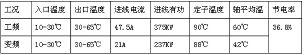 (6)噪音降低。由于電機運行于較低轉速上,運行噪音大大降低,電機的發(fā)熱量也有明顯下降。