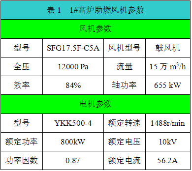 1#、2#高爐助燃風(fēng)機(jī)型號(hào)相同,其設(shè)備參數(shù)如表1所示。