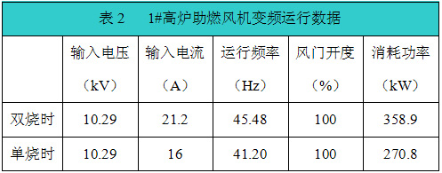 2#高爐與1#高爐運(yùn)行工況基本相同,2#高爐助燃風(fēng)機(jī)節(jié)能效果與1#高爐助燃風(fēng)機(jī)節(jié)能效果相當(dāng),這樣一年兩臺(tái)風(fēng)機(jī)共節(jié)約120余萬(wàn)元,節(jié)電效果還是非常明顯的。