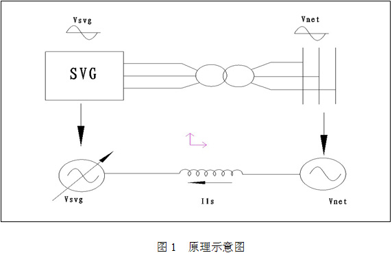 在交流電路中,電壓和電流的相位有三種情況,當(dāng)負載是純電阻特性時,電壓和電流相位相同;當(dāng)負載是(或含有)電感特性時,電壓相位超前電流相位;當(dāng)負載是(或含有)容性特性時,電壓相位滯后電流相位。如圖1所示,基本原理就是將自換相橋式電路通過變壓器或者電抗器并聯(lián)在電網(wǎng)上,適當(dāng)?shù)卣{(diào)節(jié)橋式電路交流側(cè)輸出電壓的幅值和相位,或者直接控制其交流側(cè)電流就可以使該電路吸收或者發(fā)出滿足要求的無功電流,實現(xiàn)動態(tài)無功補償?shù)哪康?,如?所示。