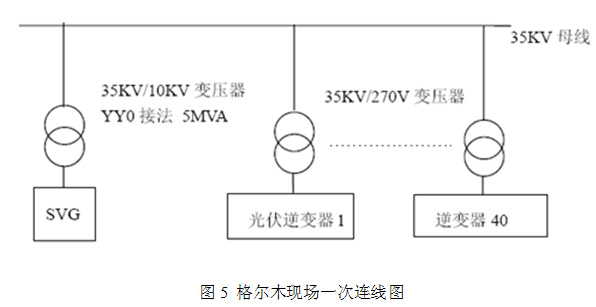 動態(tài)無功補償裝置一臺,型號FGSVG-C5.0/10,經(jīng)過升壓10kV/35kV 升壓變壓器后掛接現(xiàn)場的35kV 電網(wǎng)。